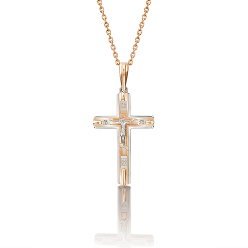 Подвеска крест из комбинированного золота
