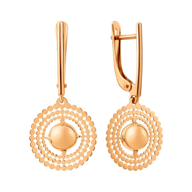 Серьги подвесные из красного золота